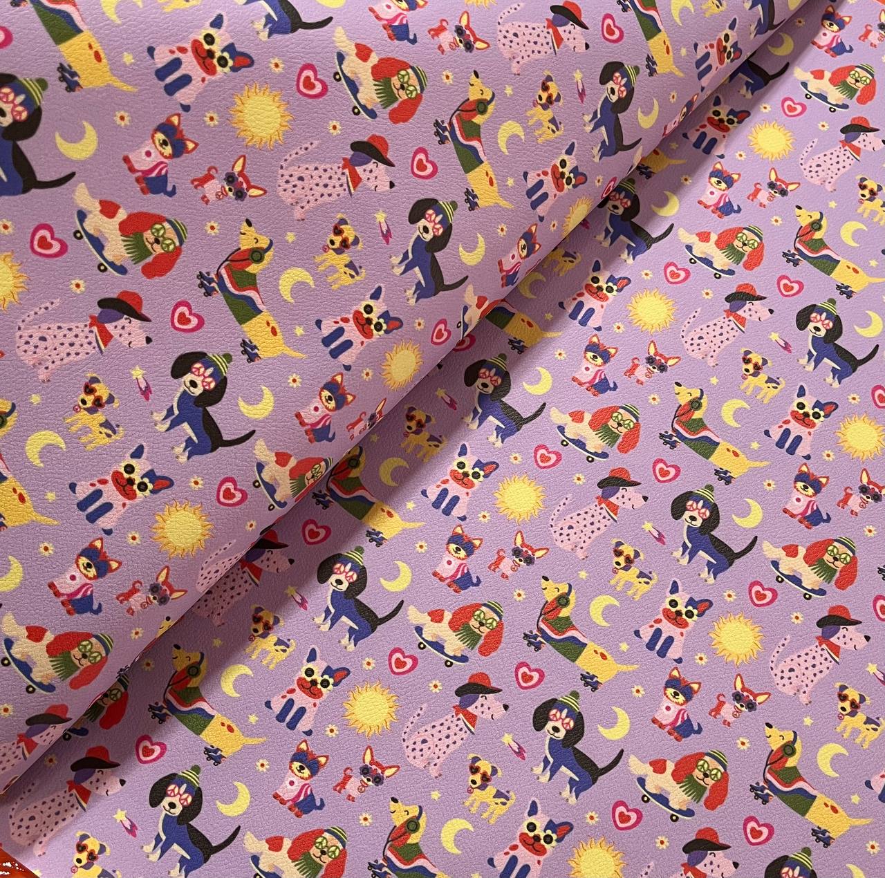 چرم فانتزی سگ های زمینه یاسی کد 142 artificial fantasy leather